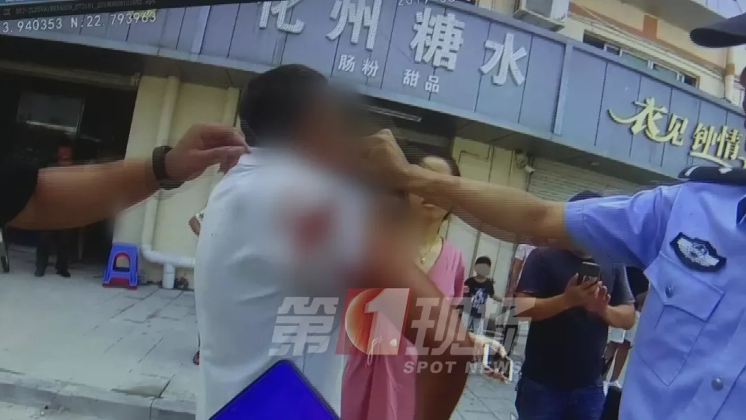 上面这一幕发生在光明区圳美新村附近的一家糖水店,当时恰好光明公安分局新湖派出所民警正在巡逻,发现在一家店铺门口聚集了不少人,其中一名男子手捂着有血迹的肩膀,另一名男子则情绪十分激动。