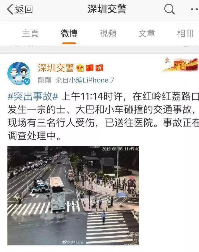 据@深圳交警官方微博通报,上午11:14时许,在红岭红荔路口发生一宗的士、大巴和小车碰撞的交通事故,现场有三名行人受伤,已送往医院。事故正在调查处理中。