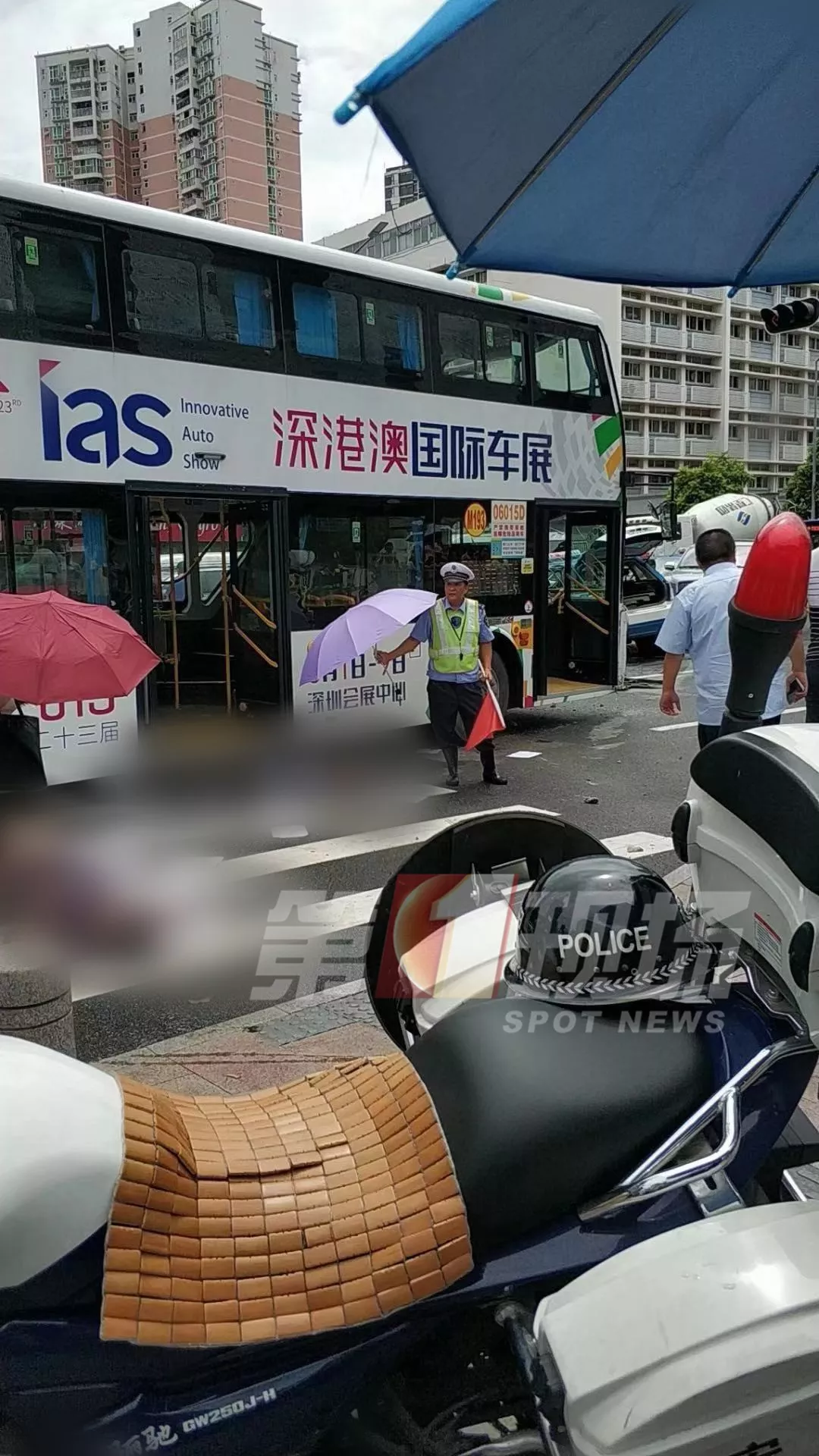 原标题:突发!深圳繁忙路段一的士与双层大巴碰撞,市民手机拍下撞击过程