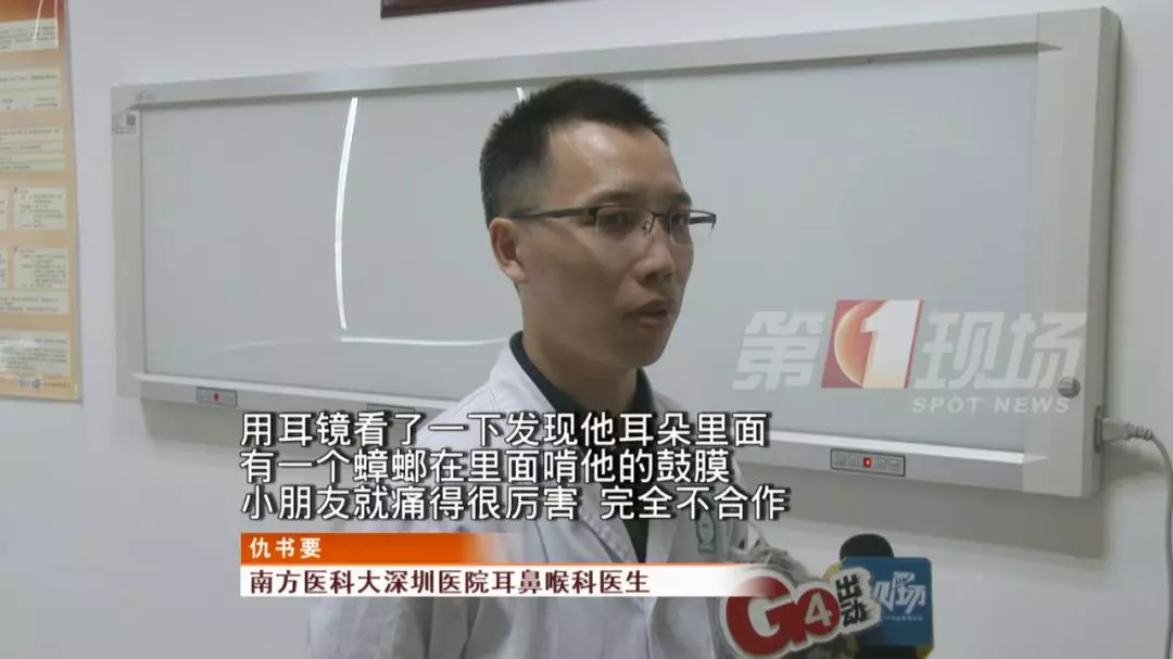 随后,刘女士立即带孩子到医院的耳鼻喉科就诊。医生检查发现,钻进孩子左耳的虫子是一只蟑螂!蟑螂正在啃食孩子的耳膜(鼓膜)给孩子带来了很大的痛苦孩子哭得撕心裂肺!!