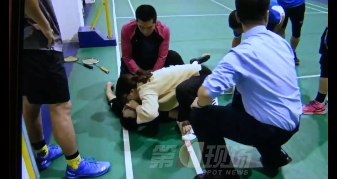 她初步判断患者为心脏方面的疾病,她马上对昏迷的患者进行人工呼吸,而陈教练则在另一边做心肺复苏,同时场馆工作人员第一时间也拨打120急救电话。
