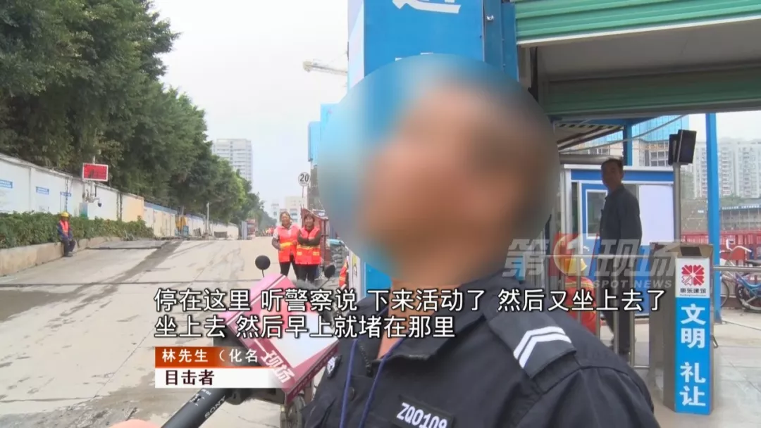 林先生是一名工地保安,他告诉记者,凌晨时分,他看到一辆小车停在了龙华清湖地铁站前方100米左右。到了早上8点半,车子还是在原地一动不动,导致早高峰交通堵塞,他觉得有点不对劲。