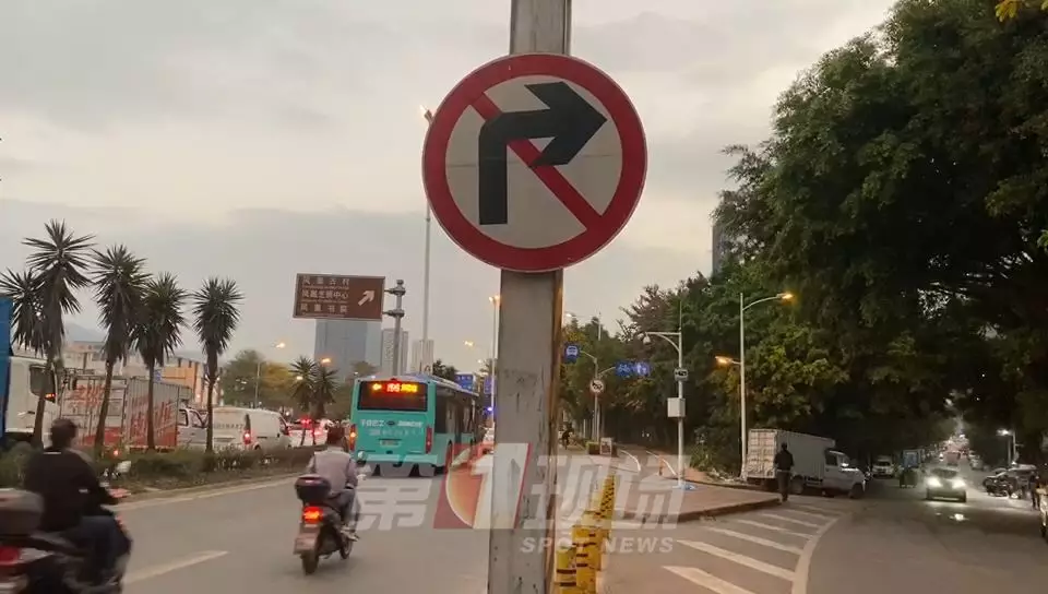 记者在现场看到,距离事发地点不远处,有一个禁止右转的指示牌。在有指示牌的状况下,泥头车依然在路口右转进入新田大道,疑似存在逆行的情况。