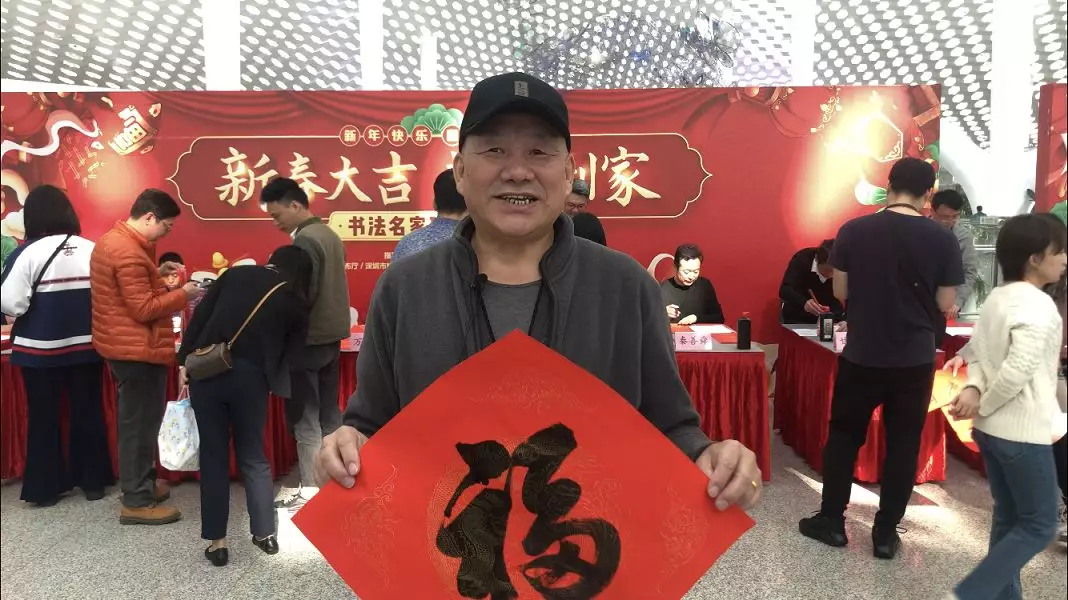 团圆,是春节永恒的主题,机场内一个个拉着行李箱步履匆匆的身影,都有着一颗归心似箭的心,而当看到书法家们挥笔写就一副副对联时,旅客们都不由得停下了脚步,工作人员热情地邀请他们挑选对联,将深圳的祝福带向各地。