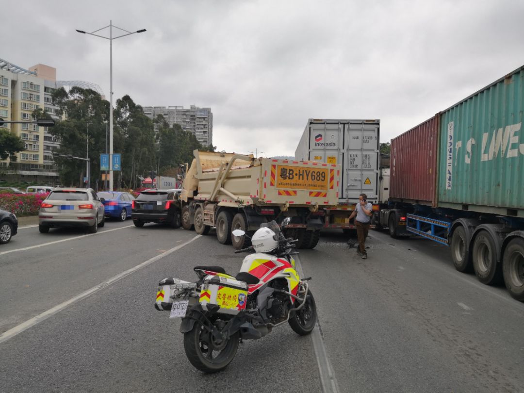 所幸此次事故未造成人员受伤。事故发生后,深圳交警立即到达现场处置,对现场人员与车辆进行调查取证,并将事故车辆拖移过磅,处理妥当后迅速恢复交通。
