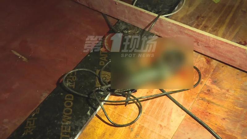 根据线索,记者来到了事发现场,在这个临时搭建的铁皮房地板上,还能看到斑斑的血迹,使用过的手持砂轮切割机,和即将安装的排气扇,依然遗留在现场。