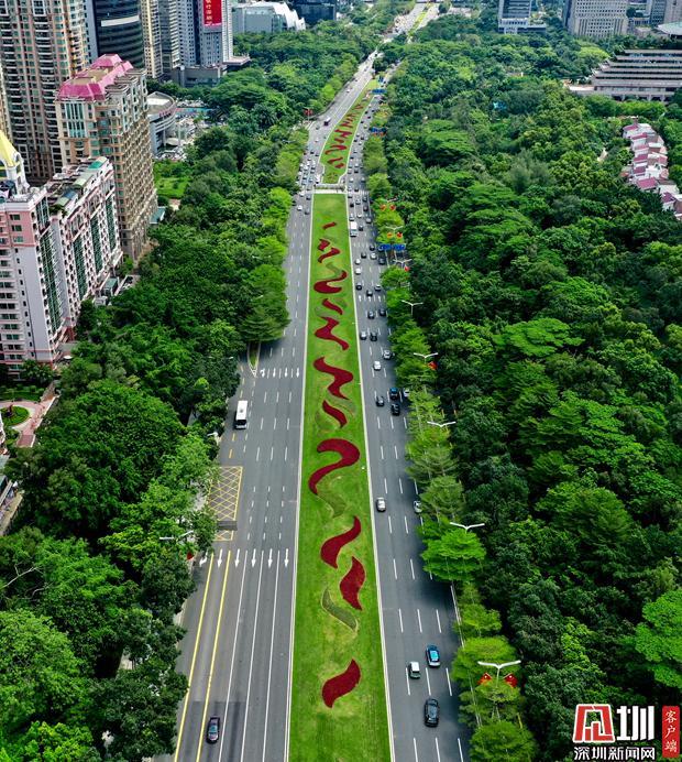 深南大道“凤凰飞羽”的花带图案(市城管局供图)