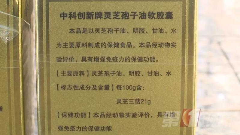 据了解,这款保健品的全名是中科创新牌灵芝孢子油软胶囊,具有国食健字号,外包装上显示主要原料是灵芝孢子油、明胶、甘油和水。保健功能一栏注明:本品经动物实验评价,具有增强免疫力的保健功能。
