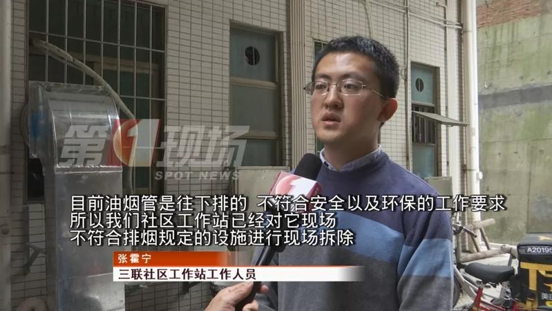 闫家人先后两次到辖区三联社区工作站反映,工作人员也有到场要求门店进行整改,但门店也仅仅只是安装了一个小烟囱,效果着实不怎么样。