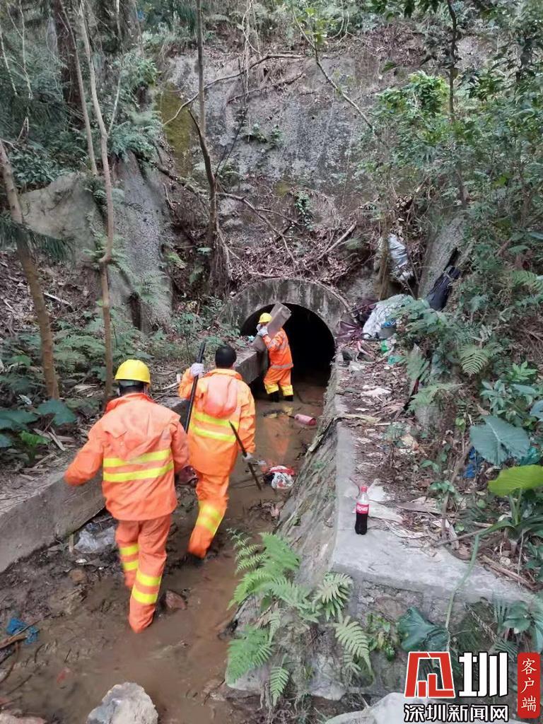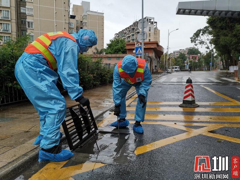 2月13日,一场春雨之后,深圳水务集团罗湖分公司员工打开雨水篦子,加速路面排水。