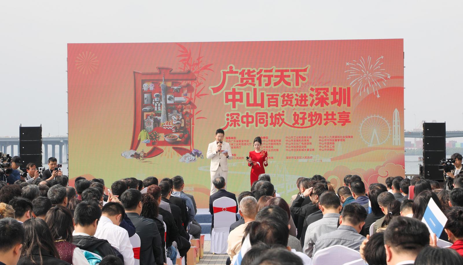 2月7日,“广货行天下・中山百货进深圳——深中同城・好物共享”活动在深圳市宝安区欢乐港湾摩天轮广场正式启动。