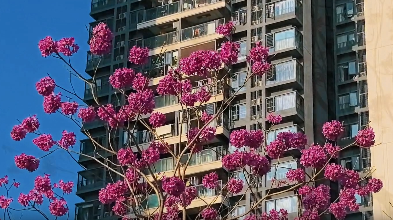 近日,位于宝安区湾区之眼书城周边的紫花风铃木迎来盛放期,粉紫花海与现代书城建筑相映成趣,成为宝安春日里一道兼具人文气息与自然之美的亮丽风景,市民可前往这片 “紫色花海”,在书香与花香中迎接春日,感受宝安城市发展的温度与美感。