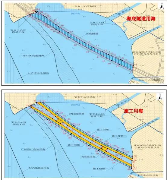 工程用海: 面积27.6893公顷,其中隧道用海10.9870公顷,用海方式为海底隧道;